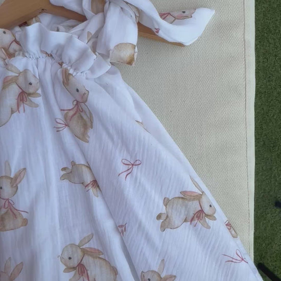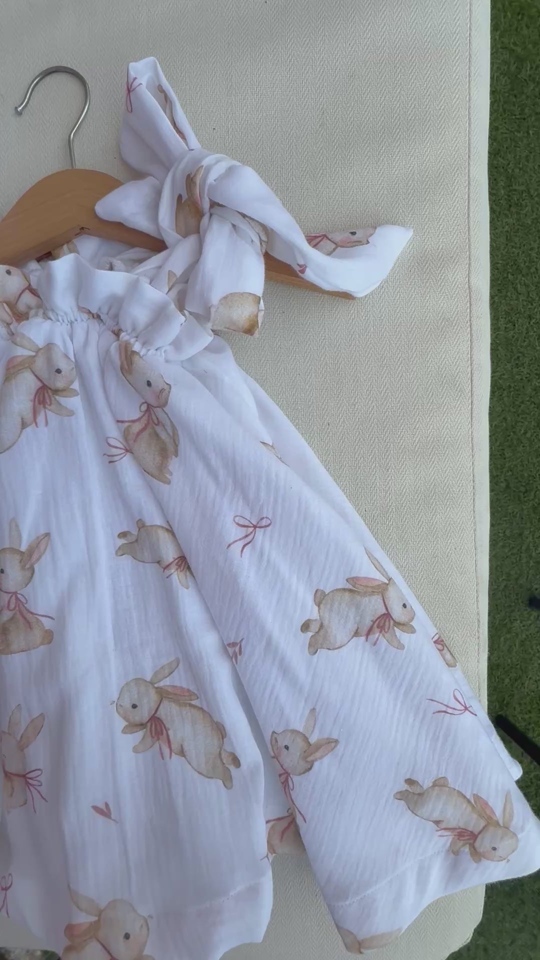 Un doux vent de tendresse souffle sur les journées ensoleillées avec cette robe à nouer aux épaules, confectionnée à la main dans une double gaze de coton ultra douce. 🐇💕